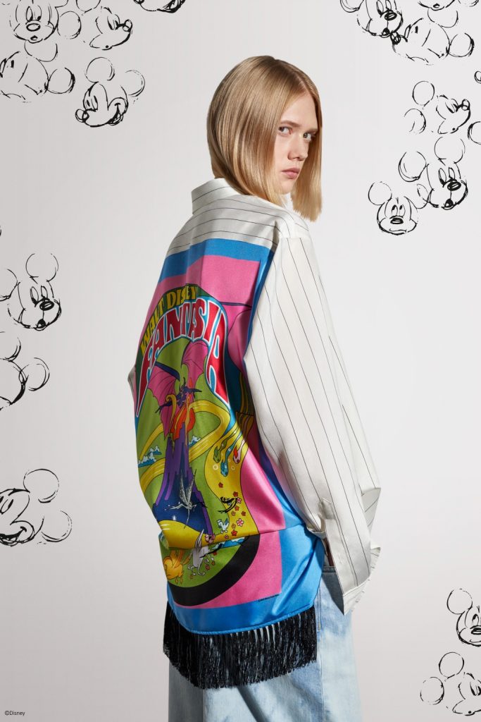 En la colección cápsula, Mickey Mouse toma motivos y arte de los posters de 1940 que aparecerán en una edición limitada realizada con seda reutilizada de la fuente LVMH Moët Hennesy Louis Vuitton, una start-up que ha emergido del programa incubadora del grupo, realizando telas de lujo no utilizadas previamente para las marcas del mismo grupo.
